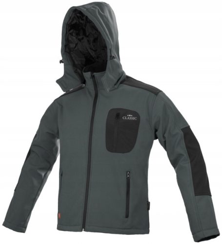 Kurtka robocza Art-Mas Classic Softshell została starannie wykonana z wysokiej jakości materiału typu microfleece - 94% poliester + 6% spandex z dodatkową impregnacją wodoodporną. Zapewnia doskonałą ochronę przed wiatrem i deszczem (na poziomie 3000mm) przy zachowaniu wysokiego komfortu noszenia oraz wentylacji skóry użytkownika (oddychalność na poziomie 1000-1500 g/m²/24h). Posiada dwie kieszenie boczne zapinane na zamek błyskawiczny, regulowane mankiety zapinane na rzepy oraz regulowany i odpinany kaptur zapinany na rzep w okolicach brody.
