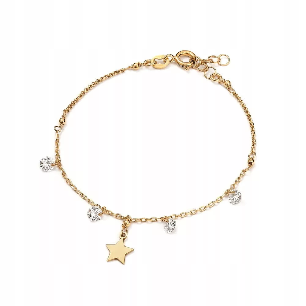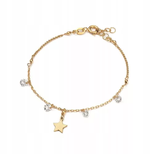 Wyjątkowa bransoletka z zawieszką w kształcie gwiazdki i białymi cyrkoniami będzie oryginalnym uzupełnieniem stylizacji zarówno eleganckiej jak i casualowej.