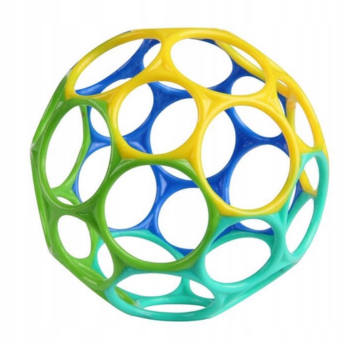 Oball Classic firmy Bright Starts jest łatwy do podniesienia i niemożliwy do odłożenia! Wykonana z 32 otworami na palce piłka jest łatwa do uchwycenia w każdym wieku. Giętki materiał jest równie przyjemny w ściskaniu, jak i w trzymaniu, co zachęca do rozwoju umiejętności motorycznych.