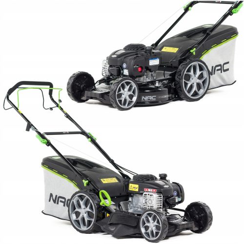 Benzines fűnyíró - Benzines fűnyíró NAC kosárral, 125 cm³ kapacitással. kosár 60 l, vágási szélesség 46 cm
