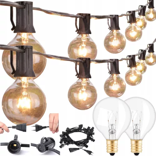 Girlanda wyposażona jest w 25 sztuk wysokiej jakości żarówek wolframowych o mocy 7W. Żarówki posiadają gwint