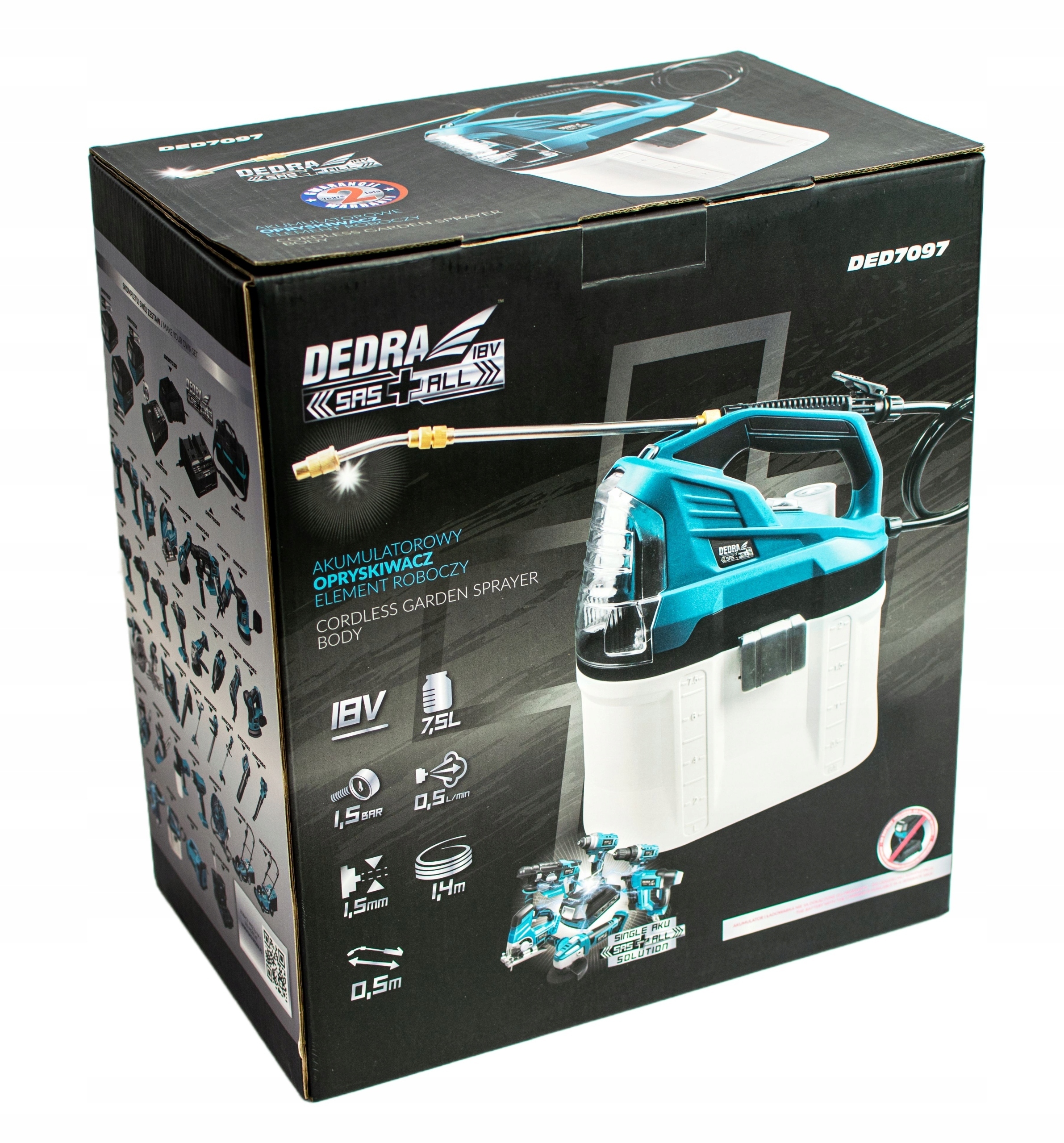 Dane techniczne akumulatorowego opryskiwacza ogrodowego DED7097: