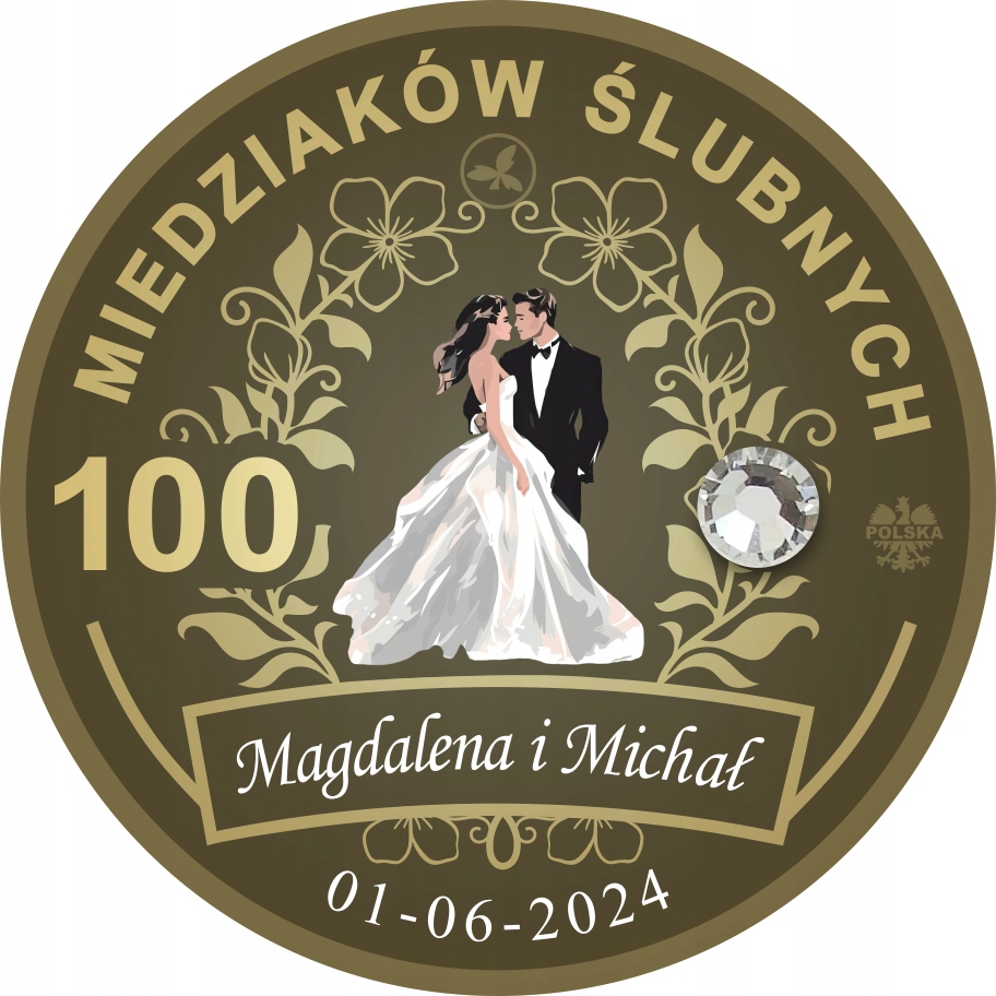 Na monecie dodajemy jedynie imiona Nowożeńców oraz datę ślubu .