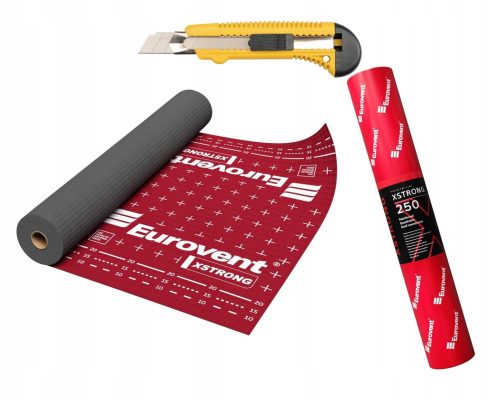 Membrana dachowa Eurovent® XSTRONG, czterowarstwowa wysokoparoprzepuszczalna o niespotykanej w innych produktach odporności na rozrywanie. Stosowana do dachów skośnych ocieplonych i wentylowanych, także z pełnym deskowaniem i o niskim kącie nachylenia. Zbrojona siatką PE, ma ekstremalną odporność na rozrywanie, daje największy komfort pracy. Nadaje się pod dachówki betonowe, ceramiczne, blachodachówki, blachy aluminiowe, łupek naturalny.