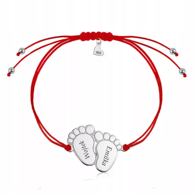 Śliczna, srebrna, bransoletka z blaszką w kształcie odcisku stóp wykonana ze srebra o próbie 925. Będzie idealnym dodatkiem do codziennych stylizacji. Bransoletka posiada blaszkę na której nieodpłatnie wykonujemy grawer. Nasza autorska biżuteria personalizowana sprawi, iż każda mama poczuje się wyjątkowo. Proponowana przez nas bransoletka zdecydowanie przypadnie do gustu osobom lubiącym oryginalną, modną i praktyczną biżuterię, którą można nosić na co dzień.