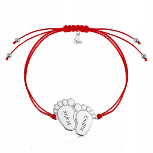 Bransoletka srebrna na sznurku z grawerowanymi stopkami od Shine Line®.