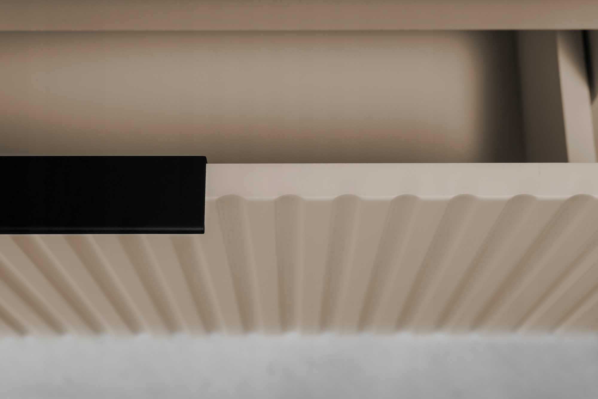 Stworzona w nowoczesnym i stylowym designie, ta kolekcja wyróżnia się modnymi, ryflowanymi frontami, wykonanymi z wysokiej jakości płyty MDF. Korpus mebli z płyty laminowanej gwarantuje trwałość i odporność na warunki łazienkowe.
