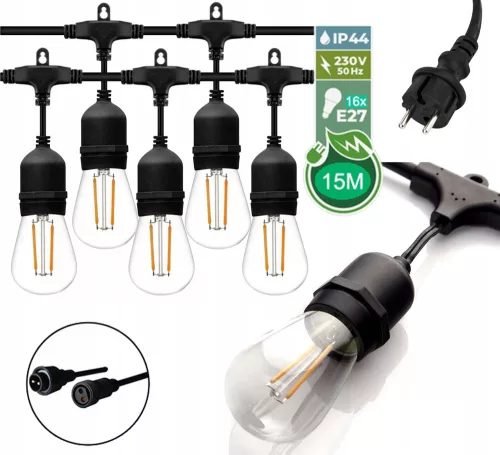 Możliwość łączenia girland ze sobą (nawet do 200m) jeśli jest kompatybilna końcówka