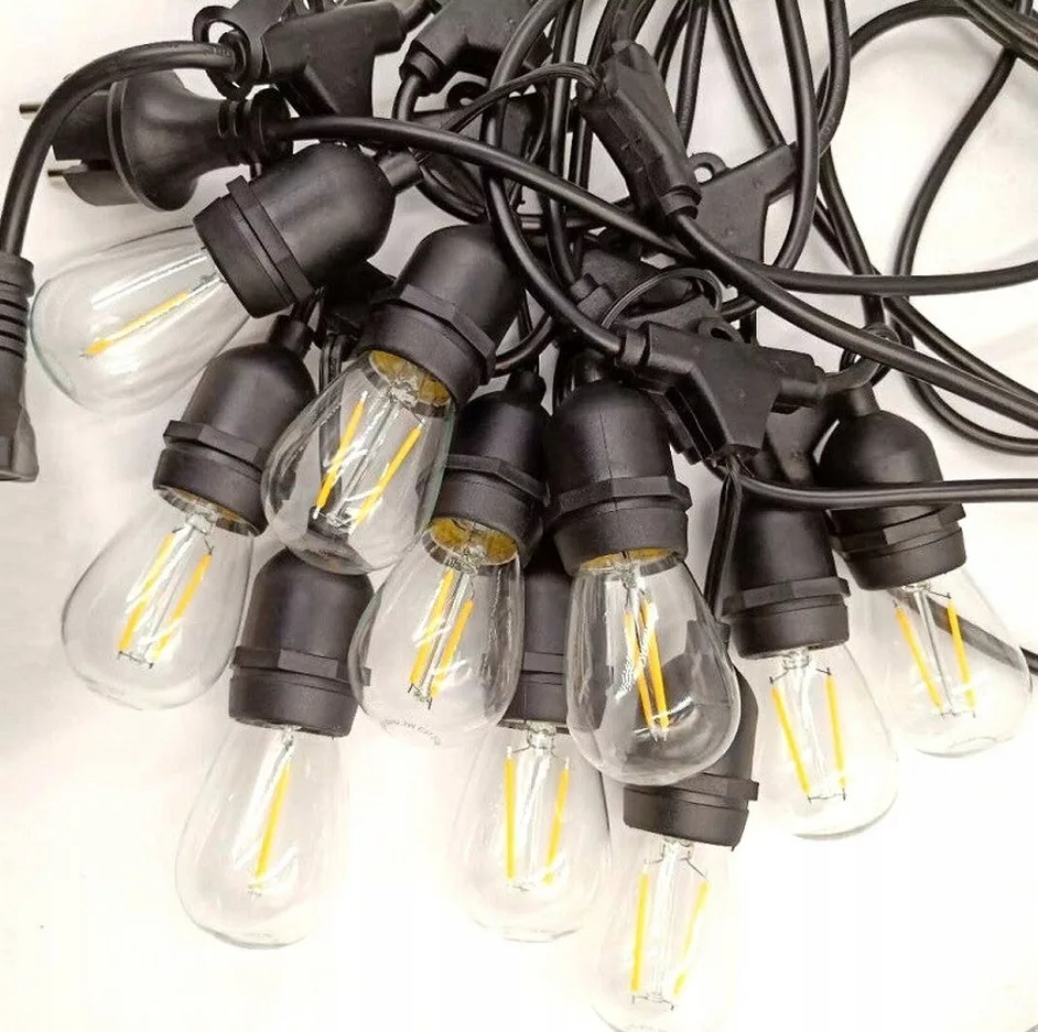 Girlanda w pełni hermetyczna, w której można stosować tradycyjne żarówki na popularnym trzonku E27, jak również żarówki LED.