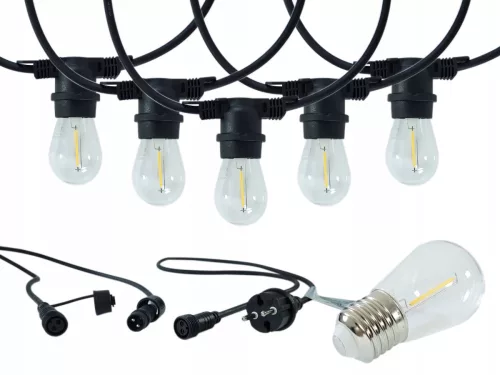 Przez zastosowanie wysokiej jakości materiałów girlanda posiada ochronę na poziomie IP44 co dajcie Ci możliwość umieszczenia jej nie tylko wewnątrz budynku ale i na zewnątrz. Nie musisz się obawiać o zalanie, ponieważ gniazda są kompleksowo uszczelnione. Świetlny sznur świetnie podkreśli nie tylko salon czy sypialnie ale również Twój taras, ogród lub balkon wprowadzając niezwykłą atmosferę. Gdzie dodatkowo świetnie sprawdzi się girlanda? Nie tylko we wcześniej wymienionych miejscach ale również w galeriach, restauracjach, barach czy food truck'ach.