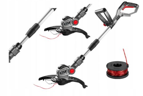 Podkaszarka akumulatorowa żyłkowa 18 V 58GE112 marki GRAPHITE to narzędzie funkcjonujące w systemie Energy+ i jest kompatybilna z bateriami litowo-jonowymi. Zalecana pojemność akumulatora to 2 i 4 Ah. Czas ich pracy wynosi kolejno 34 minuty na mniejszym i 62 minuty na większym akumulatorze. Podkaszarka charakteryzuje się szerokością koszenia 280 mm. Wyposażona w teleskopowy, ergonomiczny i regulowany uchwyt (1,0-1,4m) umożliwia wygodne przeprowadzanie zadań w ogrodzie lub na działce. Automatyczny system podawania żyłki przyspiesza pracę. Narzędzie osiąga 9000 obrotów na minutę. Posiada żyłkę o średnicy 1,6 mm oraz maksymalnej długości 3 m. Umożliwia podkaszanie oraz obcinanie obrzeży trawników. Lekka waga 2 kg pozwala na wygodne manewrowanie urządzeniem.