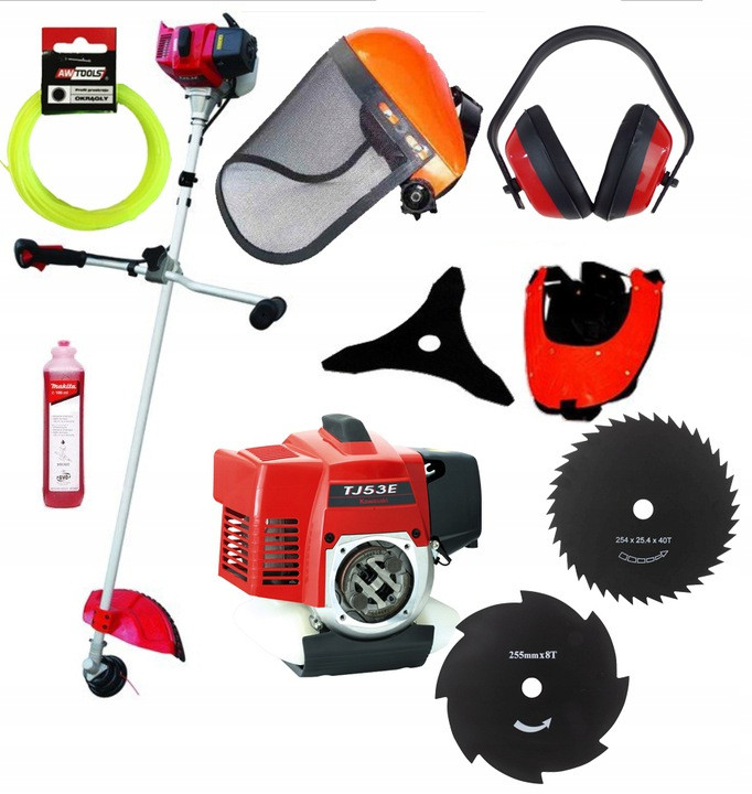 Kosa spalinowa GERMAN TJ53E z bardzo mocnym silnikiem Kawasaki o mocy do 3,5KM świetnie nadaje się do wszelkich prac ogrodowych – zarówno amatorskich jak i profesjonalnych. Posiada uchwyt do prowadzenia oburącz, dzięki czemu jest łatwa w obsłudze i konserwacji. Podwójna żyłka oraz 3 – zębowe noże umożliwiają wykoszenie nawet mocno zachwaszczonych terenów.