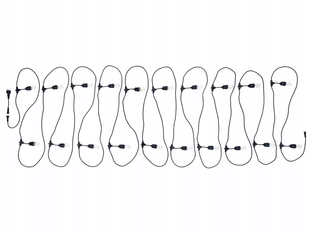 Girlandy z naszej oferty mają rozmieszczone co 1 metr gniazda E27. Charakteryzują się możliwością wydłużania szeregu do maksymalnej mocy 2300W co powoduje bardzo duże możliwości w aranżacji z zastosowaniem produktu. Girlandy są przystosowane do żarówek energetycznych w klasach A++ - E co jeszcze zwiększa możliwości aranżacji przy zastosowaniu alternatywnych źródeł światła. Posiadają one stopień szczelności IP44 dzięki czemu można mieć pewność, że produkt będzie bezpiecznie pracował przy zmiennych warunkach zewnętrznych.
