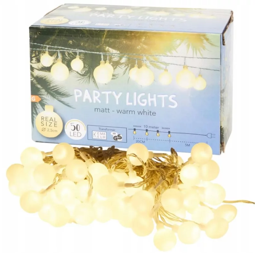 Girlanda posiada aż 50 świecących jasnym światłem lampek led w zestawie, a odległość między poszczególnymi kulkami wynosi 20 cm. Całkowita długość zestawu to 15m. Zapewnia to niesamowity efekt świetlny i podkreśla niepowtarzalną atmosferę i klimat.