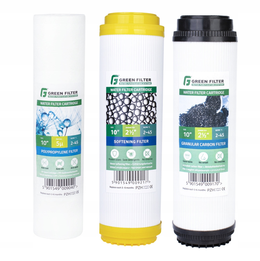Zestaw zawiera wkłady na 3 stopniową filtrację wody: