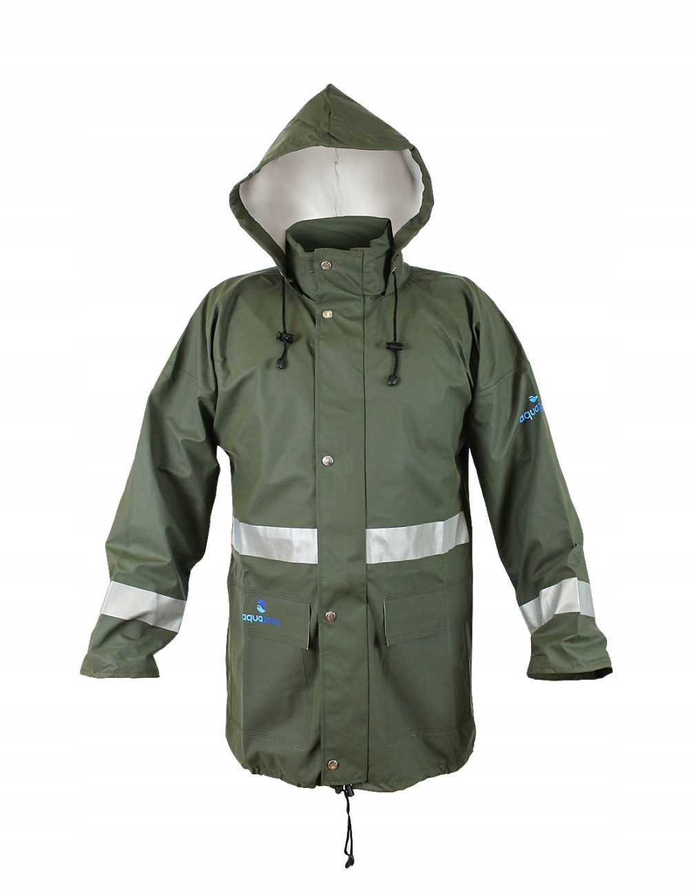 Model produkowany z lekkiej wodoochronnej i elastycznej tkaniny powlekanej Aquaproof Basic. Wyposażona w taśmy odblaskowe zwiększające widzialność pracownika.