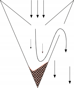 Strumień powietrza naładowany cząsteczkami farby zachowuje się podobnie do trajektorii pocisku. Cząsteczki farby cięższe od powietrza stopniowo gromadzą się w kieszeniach poza strumieniem powietrza. To pozwala wyeliminować zjawisko migracji, które powszechnie występują w przypadku filtrów siatkowych lub z włókna szklanego.