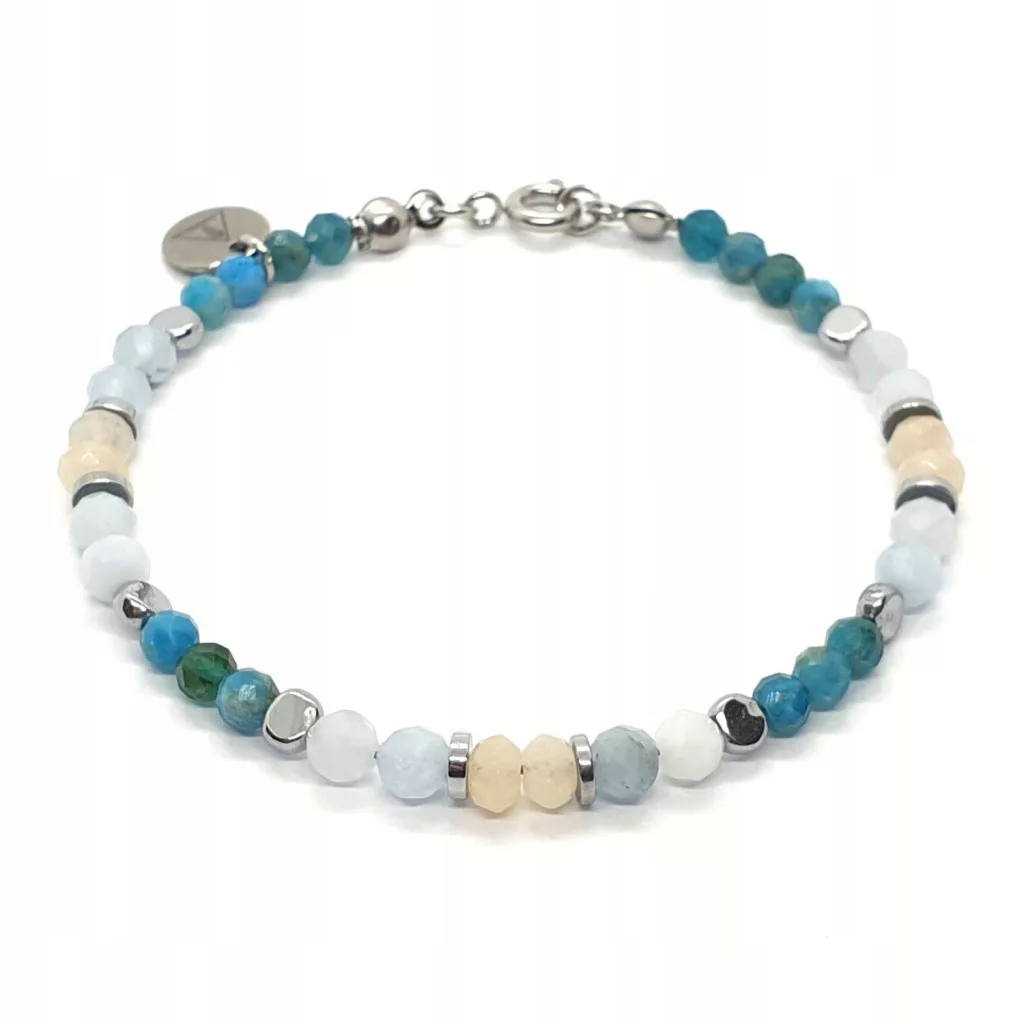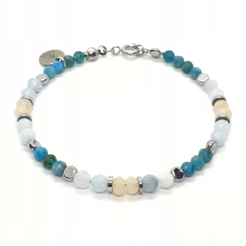 Kamienie: akwamaryn, apatyt, jadeit, hematyt srebrny