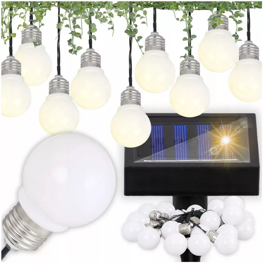 20 mlecznych kulek LED w kształcie żarówki w subtelny sposób podkreśla unikalny design girlandy. Każda lampka emanuje delikatnym i ciepłym światłem, nadając Twojemu otoczeniu wyjątkowego uroku i romantycznego nastroju.