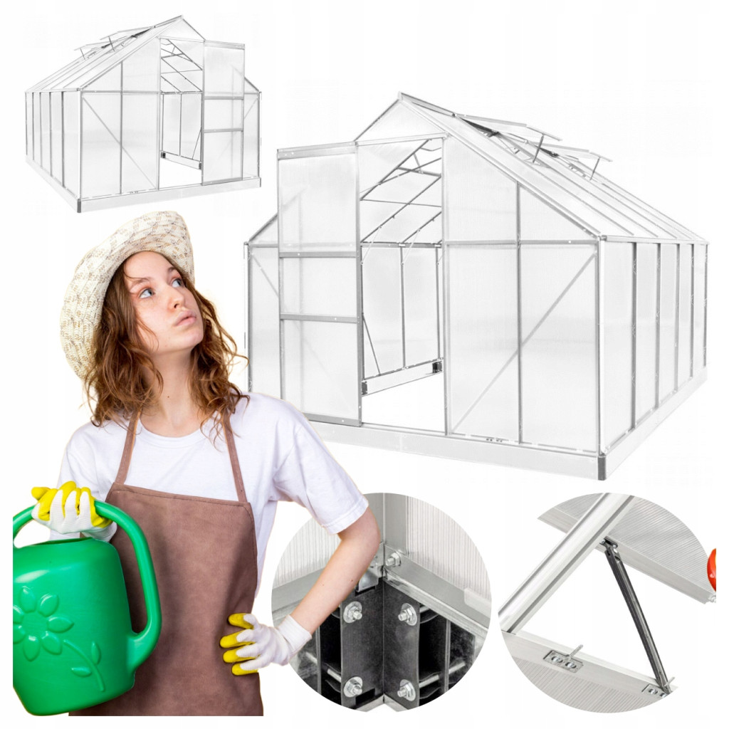 Konstrukcja ramy szklarni wykonana jest z aluminium, co skutecznie minimalizuje ryzyko korozji. Stalowy fundament istotnie przyczynia się do stabilności i solidności struktury szklarni ogrodowej. Dodatkową korzyścią wynikającą z tej konstrukcji jest łatwość montażu oraz możliwość umieszczenia jej w dowolnym miejscu w ogrodzie lub na działce.