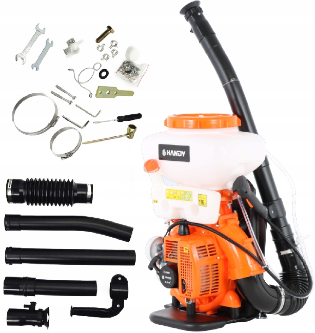 Opryskiwacz spalinowy renomowanej firmy HANDY to produkt wykonany z wysokiej jakości materiałów. Zasilany jest on wydajnym silnikiem dwusuwowym o mocy 2,9 KM, który zapewnia mu wyrzut na odległość nawet 12 m. Preparaty przechowywane są w pojemniku o pojemności 12 l, co pozwala na dłuższą pracę bez konieczności częstego przerywania jej w celu napełnienia zbiornika. Spalinowy opryskiwacz plecakowy jest stosowany do wykonywania oprysków w ogrodzie, w sadzie, w szklarniach, w szkółkach czy też na uprawach rolnych. Posiada on możliwość oprysku proszkowego. Ze względu na daleki wyrzut, spalinowy opryskiwacz doskonale sprawdza się na większych obszarach. Opryskiwacz spalinowy plecakowy to pomoc zarówno dla osób prywatnych, jak i przy uprawach na szerszą skalę, prowadzonych przez profesjonalne firmy. Opryskiwacz plecakowy spalinowy marki HANDY jest ergonomiczny, co znacznie ułatwia jego używanie. Waży on również stosunkowo niewiele, dzięki czemu może być noszony w formie plecaka przez dłuższy czas. Dużą zaletą tego opryskiwacza jest jego wysoka wydajność przy niewygórowanej cenie. Podczas pracy przydadzą się maska do ochrony dróg oddechowych oraz rękawice ochronne.