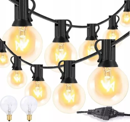 【Łańcuch świetlny na zewnątrz z 25 żarówkami】 Ta bajkowa lampa składa się z 25 wysokiej jakości wodoodpornych żarówek o łącznej długości 760 cm, z odległością między dwoma żarówkami 30,5 cm. Może stworzyć przytulną i świąteczną atmosferę dla Ciebie i Twojej rodziny. Nadaje się na ślub, urodziny, boże narodzenie, Halloween, dekoracja wnętrz na zewnątrz