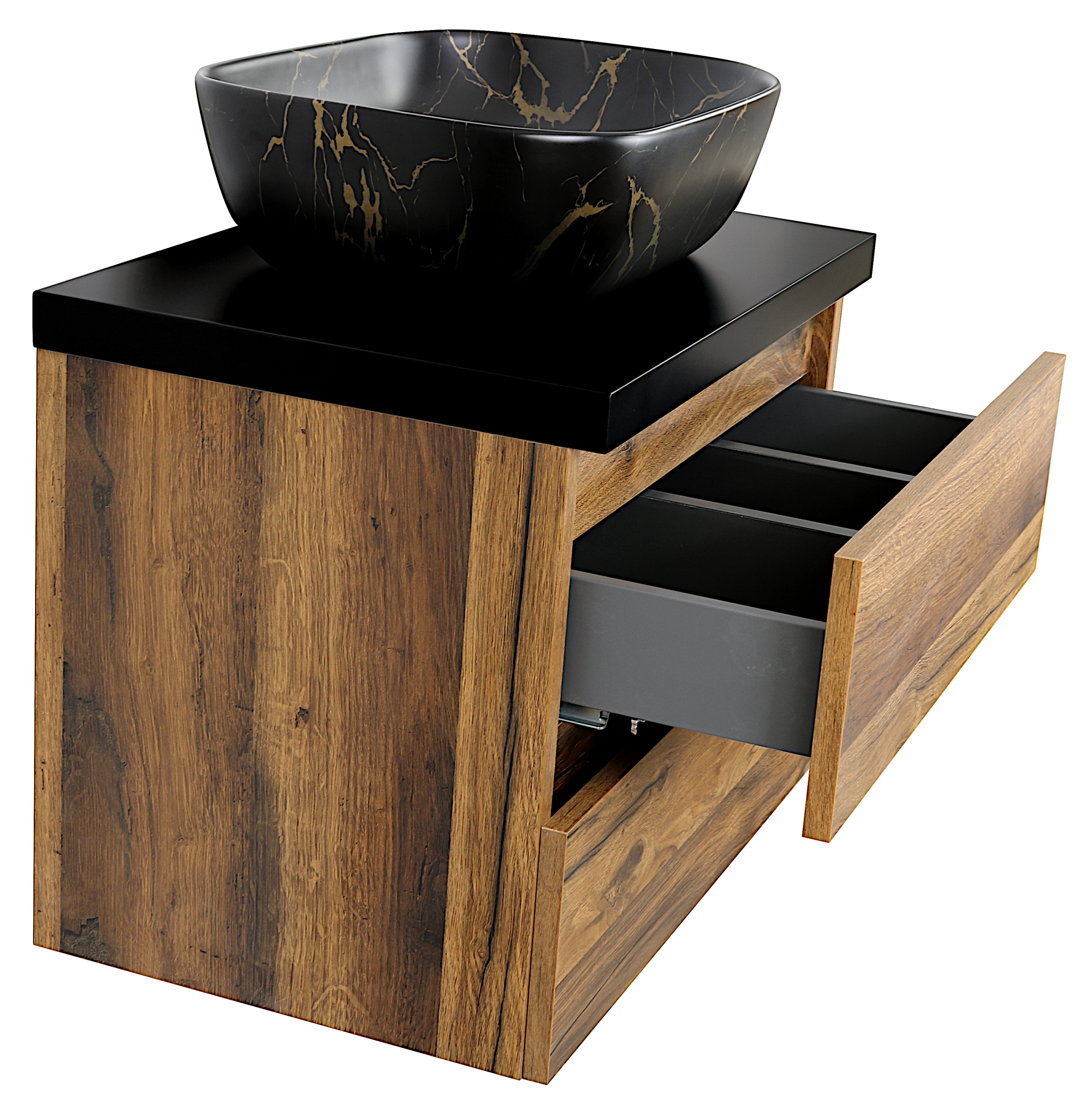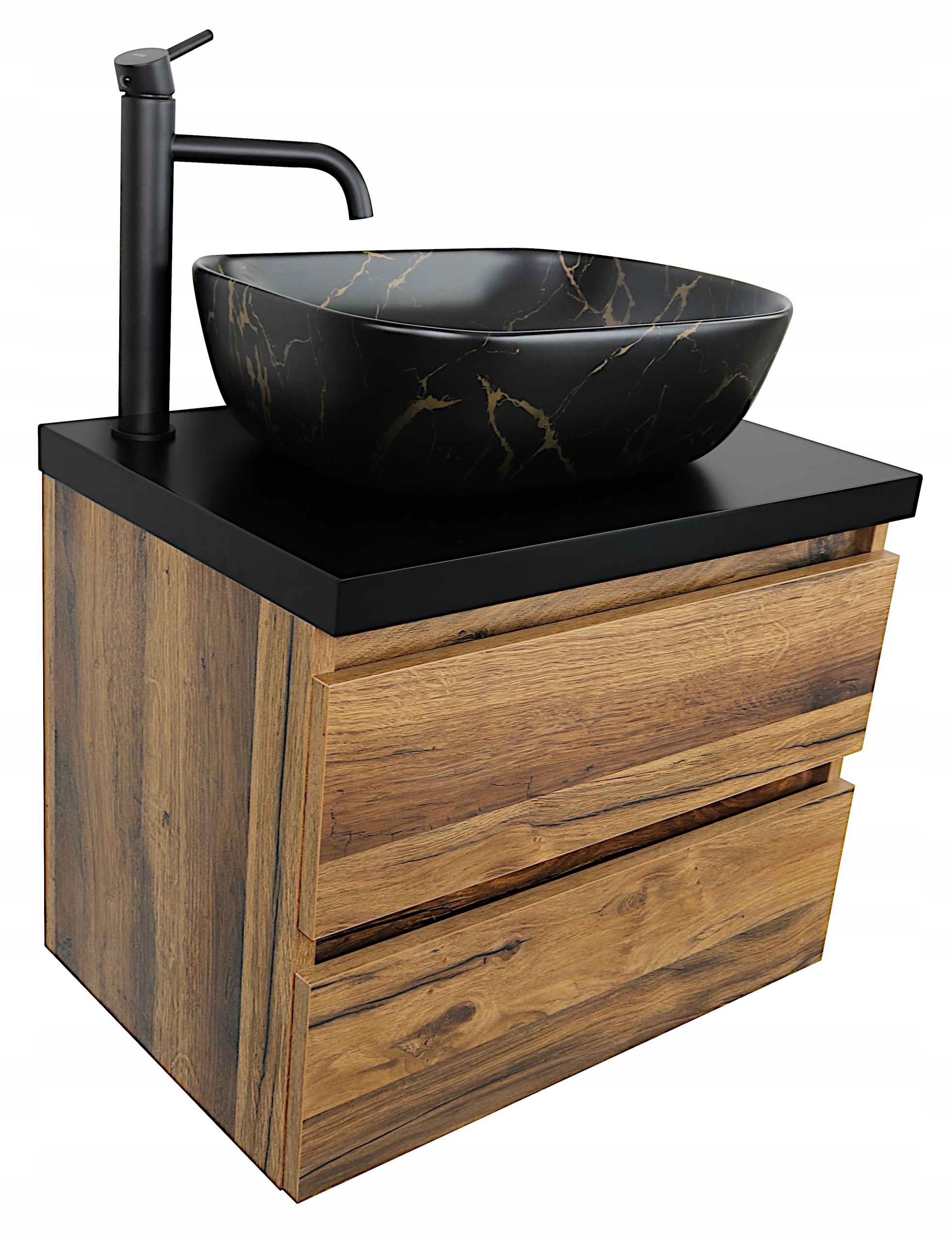 Podwieszana rustykalna industrialna szafka łazienkowa loft z blatem czarny mat