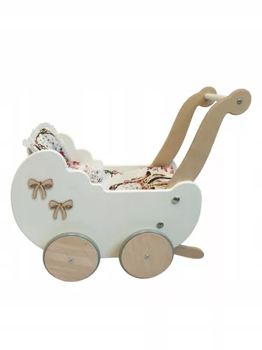 Drewniany wózeczek to idealny prezent dla małej dziewczynki na urodziny, chrzciny , roczek bądź inną okazje.