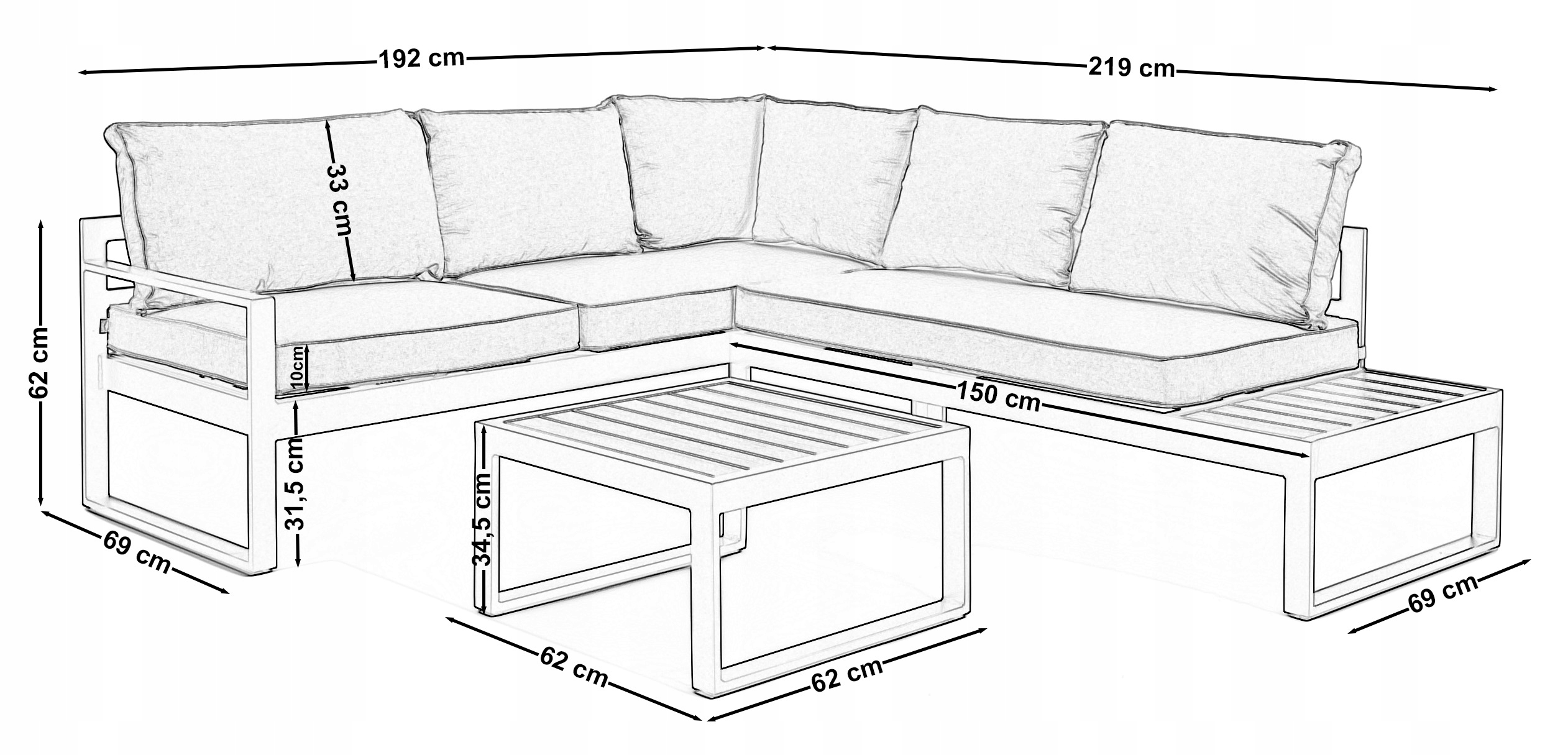 Miękkie poduszki sprawią, że chwile relaksu pod chmurką będą jeszcze wygodniejsze. Wysokiej jakości elementy wykonane z ALUMINIUM oraz DESKI KOMPOZYTOWEJ czynią go całkowicie odpornym na warunki atmosferyczne.