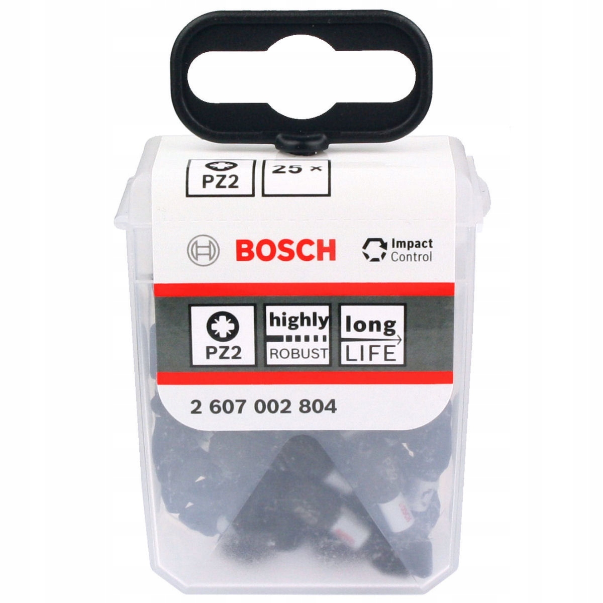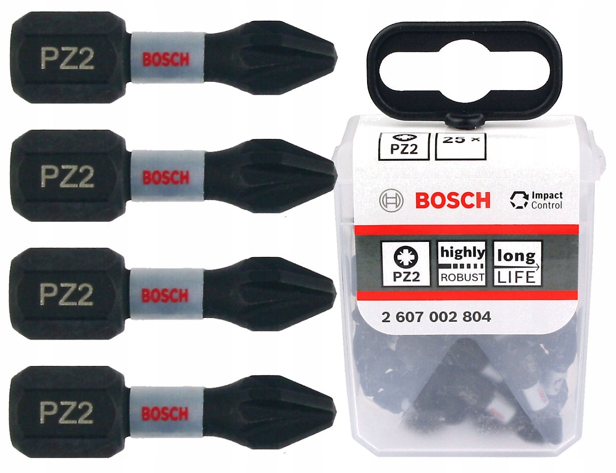 • Komplet 25 sztuk bitów PZ2 Impact Control BOSCH w pojemniku