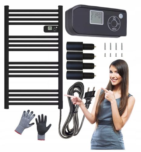 Fürdőszoba radiátor ELEKTROMOS RADIATOR LÉTRA TERMOSZTÁT 500 W LCD 500 W 545 x 1070 mm fekete