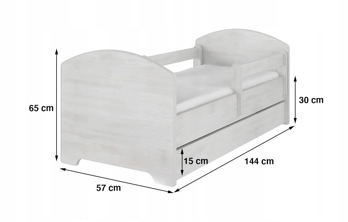 • dwie barierki zabezpieczające dziecko przed upadkiem podczas snu o wymiarach około 70 cm i 136 cm