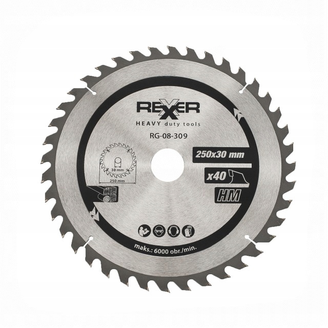 • 1 x PIŁA TARCZOWA HM DO DREWNA 250X30 MM 40 ZĘBÓW Z PŁYTKAMI WĘGLIKOWYMI