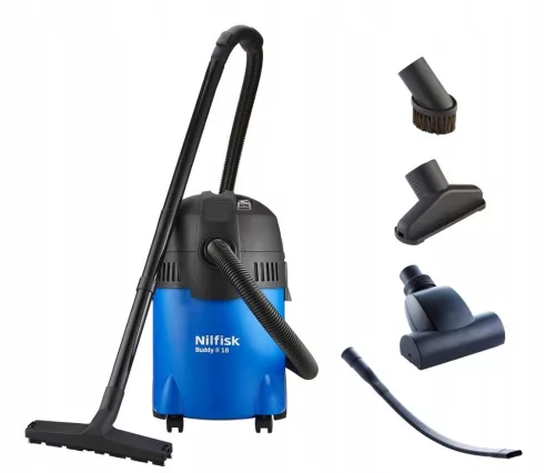 Nilfisk Buddy II 18 – drugiej generacji – posiada zbiornik o pojemności 18 litrów. Niewielki ciężar i gabaryty sprawiają, że jest niezwykle łatwy do przenoszenia. Może być używany do zbierania zanieczyszczeń w domu, garażu, warsztacie i do sprzątania wnętrza samochodu. Można też przy jego pomocy nadmuchać ponton albo basen ogrodowy.