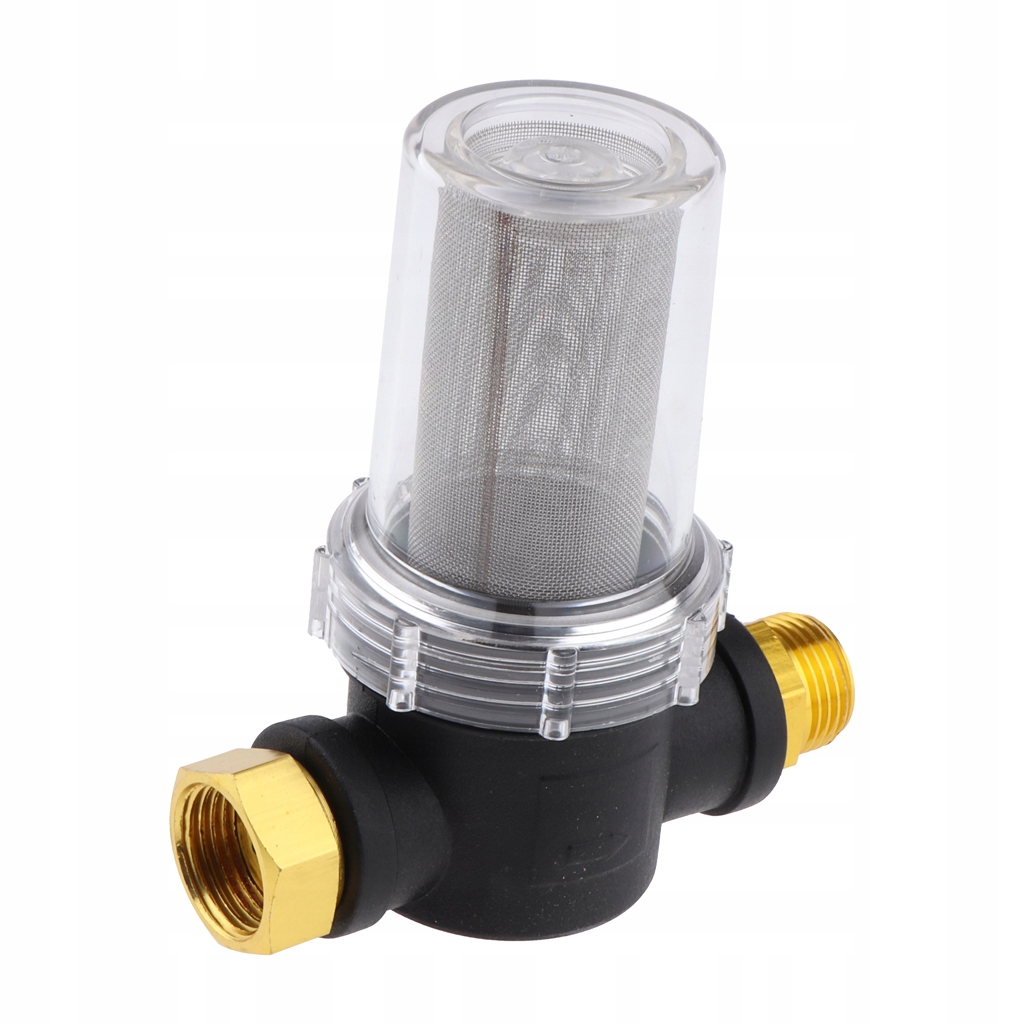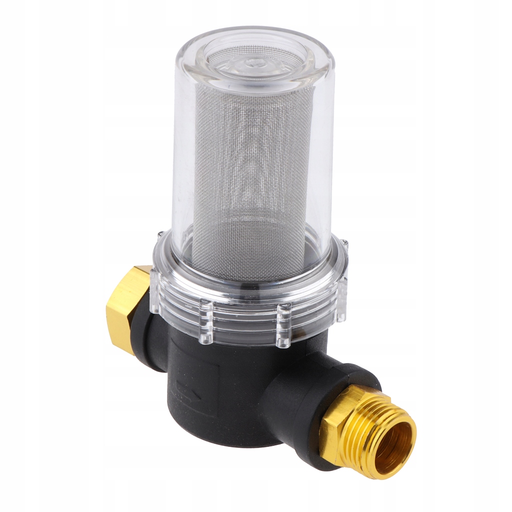Zaprojektowany do filtrowania wody wypływającej z czopa do węża ogrodowego, aby zapobiec uszkodzeniu pompy myjki ciśnieniowej