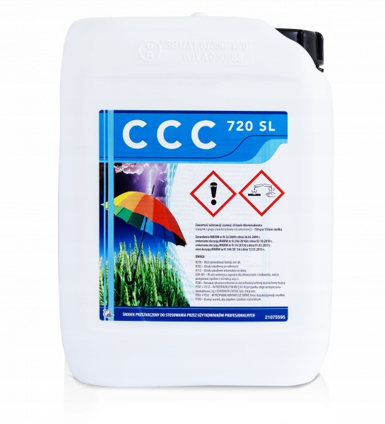 CCC 720 SL jest środkiem z grupy regulatorów wzrostu i rozwoju roślin w formie koncentratu rozpuszczalnego w wodzie. CCC 720 SL stosuje się w celu zapobiegania wyleganiu pszenicy ozimej i jarej.