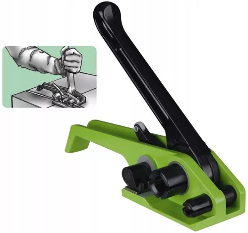 Wysokiej klasy napinacz wykonany z trwałych materiałów. Napinacz jest bezawaryjny, trwały i bardzo solidny. Służy do spinania taśm poliestrowych przy użyciu zapinek drucianych. Prosty w obsłudze i lekki. Napinacz napina i odcina taśmę.