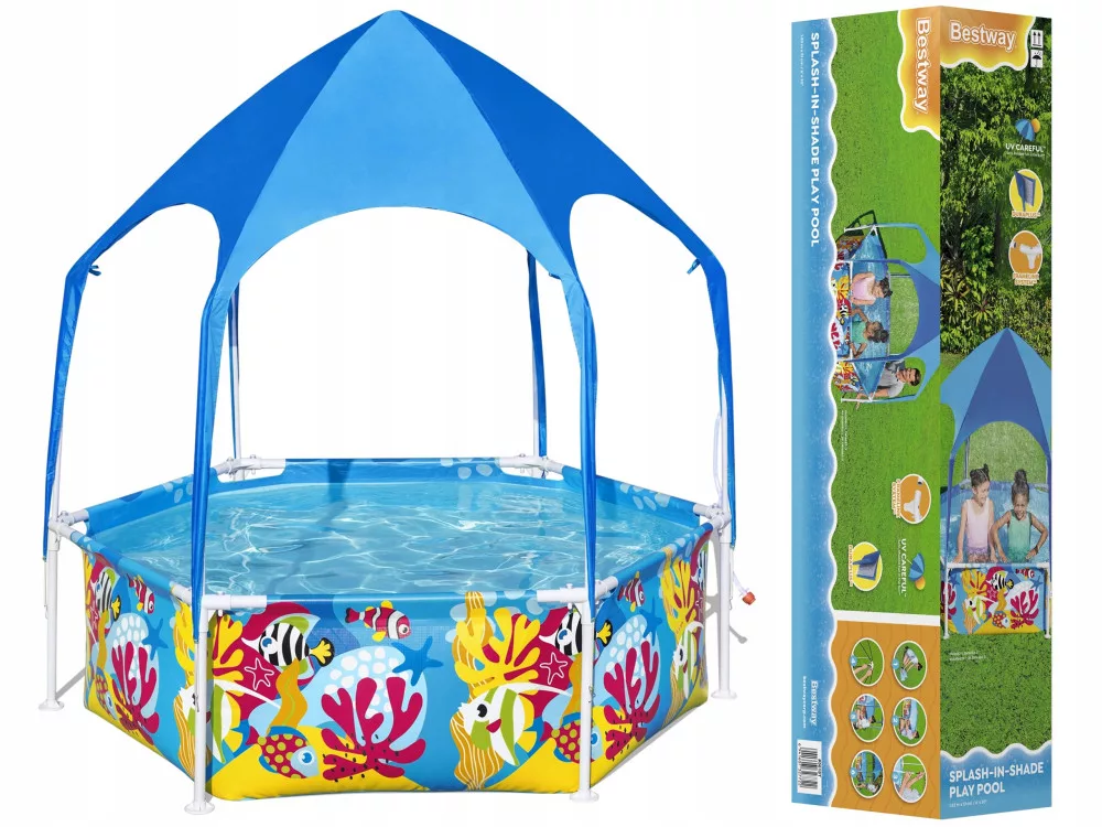 Niewątpliwą zaletą zestawu jest daszek, który zapewni osłonę przed słońcem i szkodliwym promieniowaniem UV. Kąpiel stanie się jeszcze przyjemniejsza!