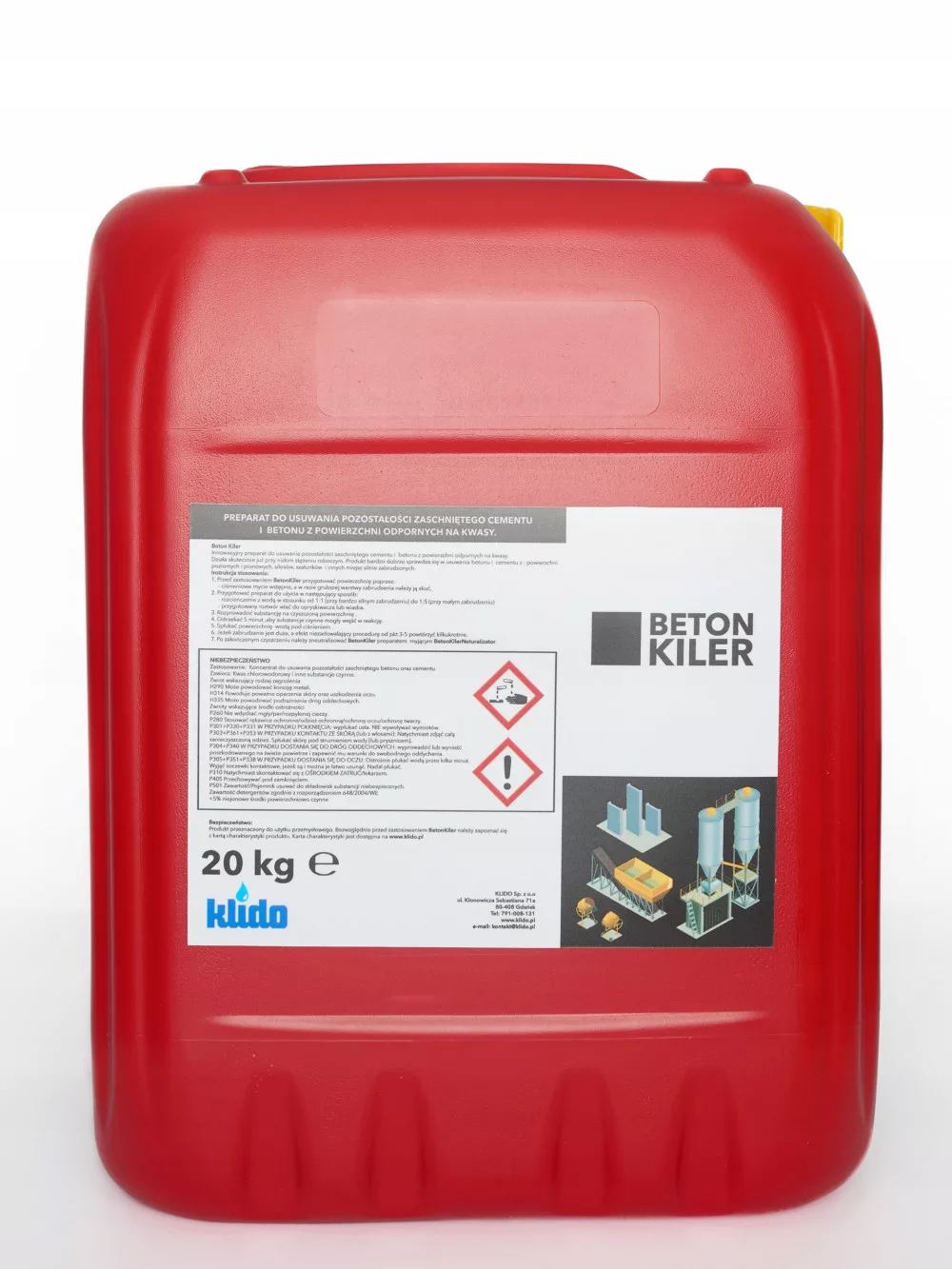 Produkt marki Beton Kiler to innowacyjny w pełni biodegradowalny preparat przeznaczony do usuwania zaschniętego betonu, zabrudzeń cementowych i wapiennych osadów z wszelkich powierzchni odpornych na kwasy.