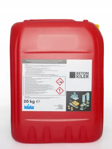 Beton Kiler to silny koncentrat do użytku przemysłowego, idealny do czyszczenia ciężko zabrudzonych betonem maszyn budowlanych, silosów na cement, cystern, szalunków, betoniarek czy rusztowań. Bardzo dobrze sprawdza się przy czyszczeniu powierzchni zarówno poziomych jak i pionowych narażonych na bezpośredni kontakt z betonem.