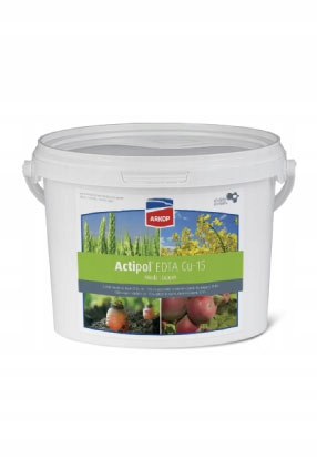 Miedź odgrywa kluczową rolę w syntezie i stabilizacji chlorofilu. Większość miedzi w roślinach jest magazynowana w chloroplastach. Niedobór tego pierwiastka objawia się najpierw obumieraniem starszych liści, a w dalszym etapie zahamowaniem wzrostu, więdnięciem roślin i deformacjami lub karłowaceniem kłosów w uprawach zbóż. Preparat Actipol EDTA Cu-15 zaspokaja zwiększone zapotrzebowanie na miedź, szczególnie w uprawach zbóż jarych i ozimych, kukurydzy oraz roślin okopowych.