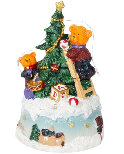 Scenka świąteczna z Misiami, które ubierają choinkę, brokatem, oświetleniem LED X 5.